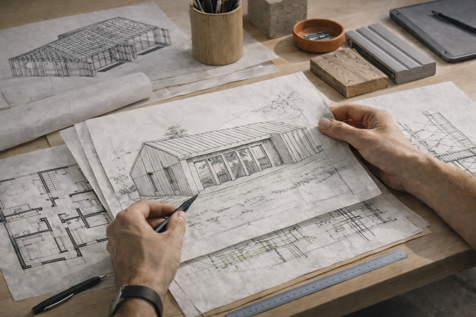 Privātmājas projektēšana sastāv no vairākiem posmiem. Atkarībā no projekta sarežģītības un klienta vajadzībām piedāvājam dažādus sadarbības apjomus – no sākotnējās konsultācijas līdz pilnai projekta izstrādei un autoruzraudzībai būvniecības laikā.
